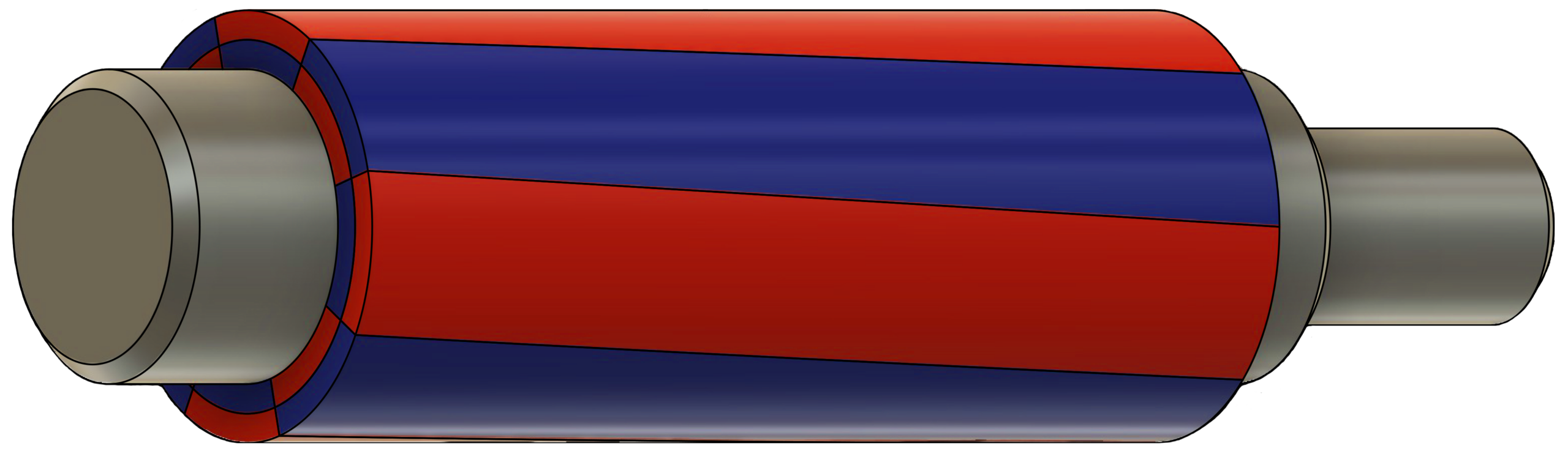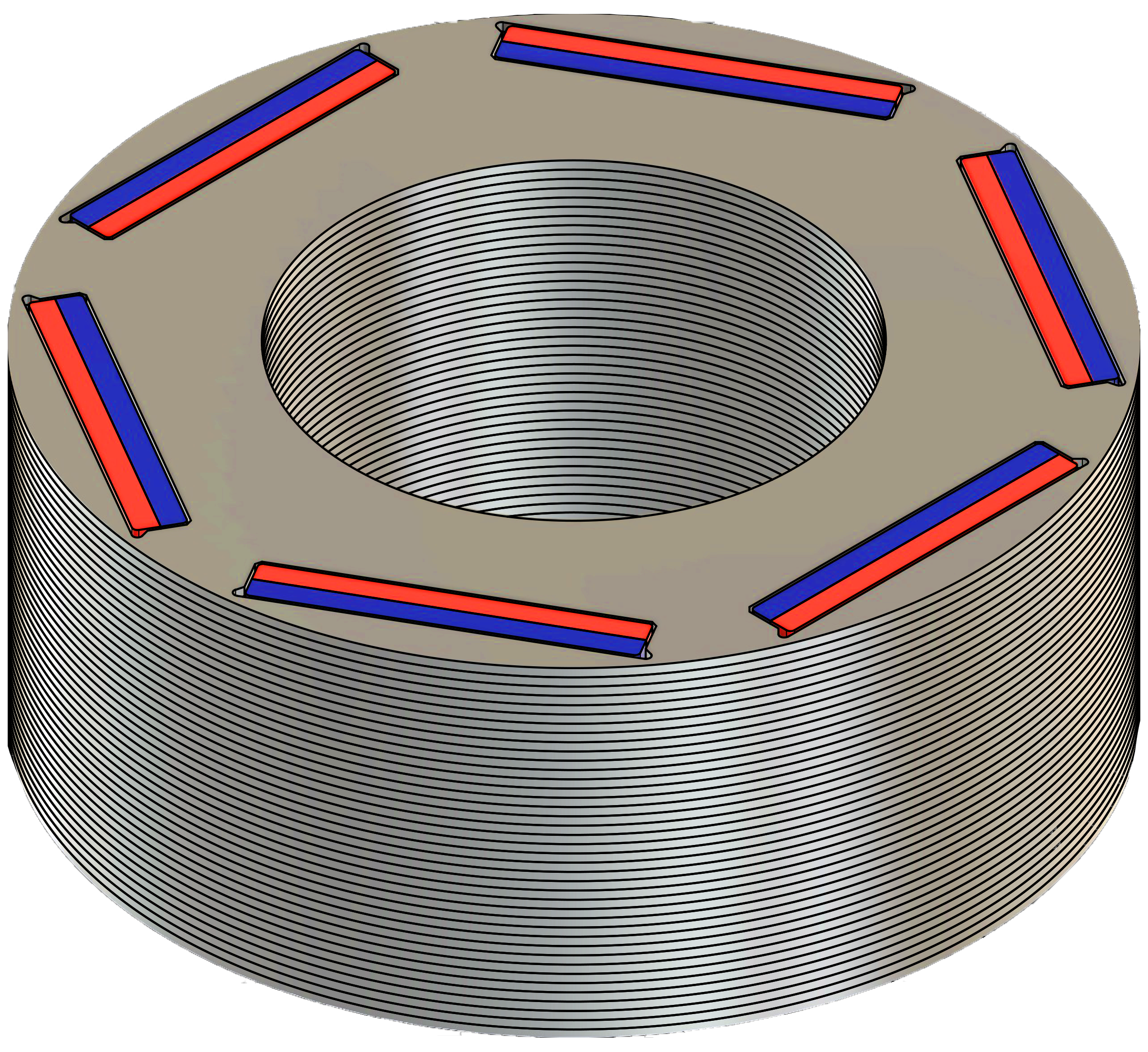 ![]() 磁気センサー用 平面60極 | ![]() モーター用リング 内周面スキュー4極 | モーター用リング外周面8極 | ![]() モーター用セグメント 外周面4極 |