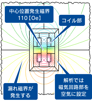 コイル条件(線径、巻き数、コイル間ギャップ、通電電流)を同等にし、磁気回路無し、有りを比較解析をしています。